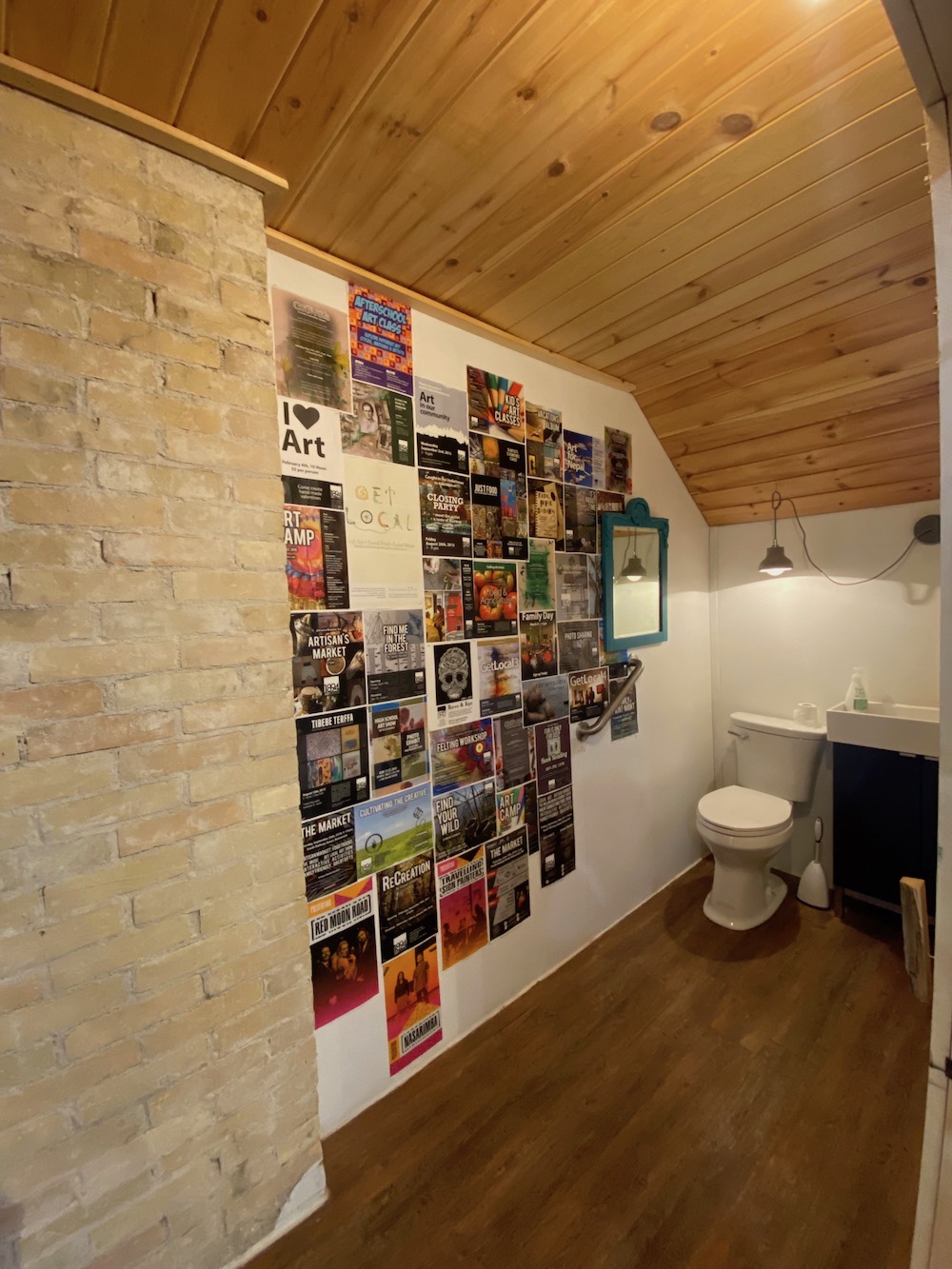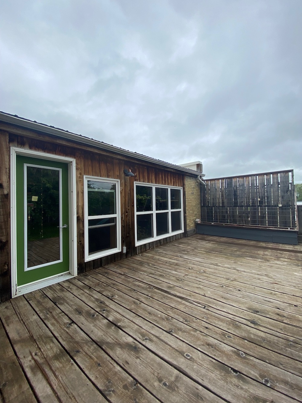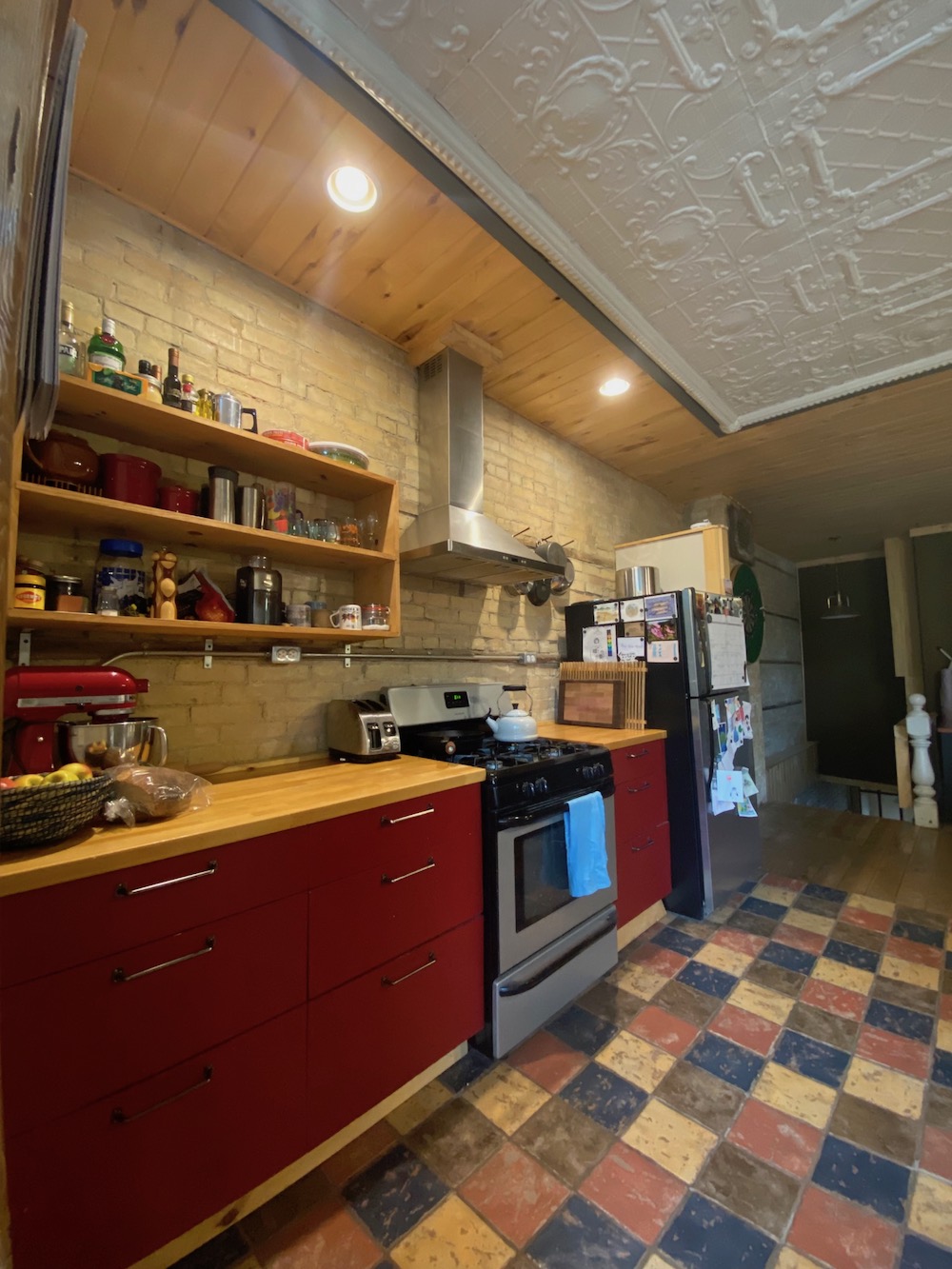 Completely renovated in 2010, the original 2 storey brick structure is 1250 square feet, with a ‘gallery’ open space on the main floor and apartment on the second floor. There is a 1000 square foot addition on the rear with plenty of storage, an artists’ studio and a green roof/deck accessed via the upstairs apartment.