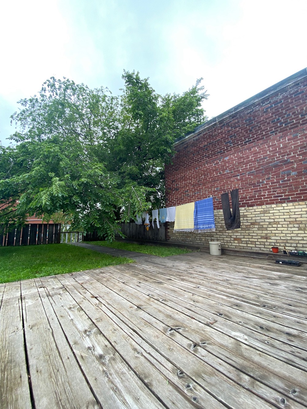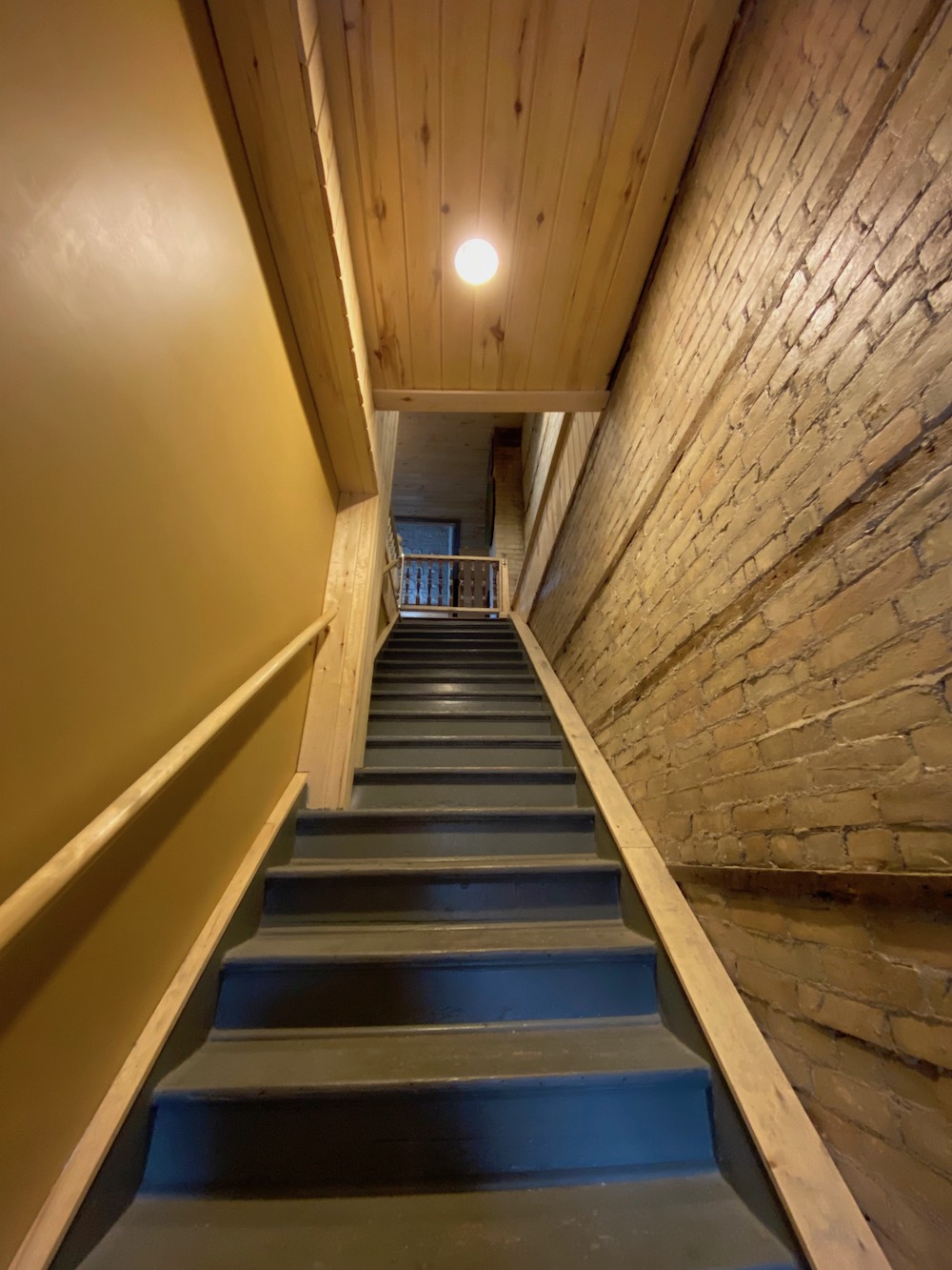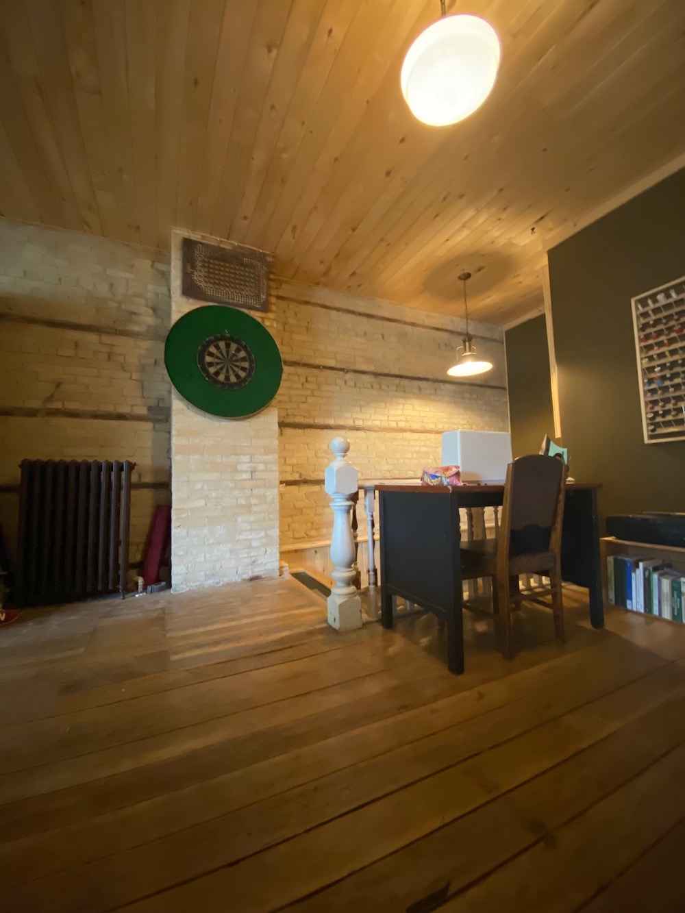 Completely renovated in 2010, the original 2 storey brick structure is 1250 square feet, with a ‘gallery’ open space on the main floor and apartment on the second floor. There is a 1000 square foot addition on the rear with plenty of storage, an artists’ studio and a green roof/deck accessed via the upstairs apartment.
