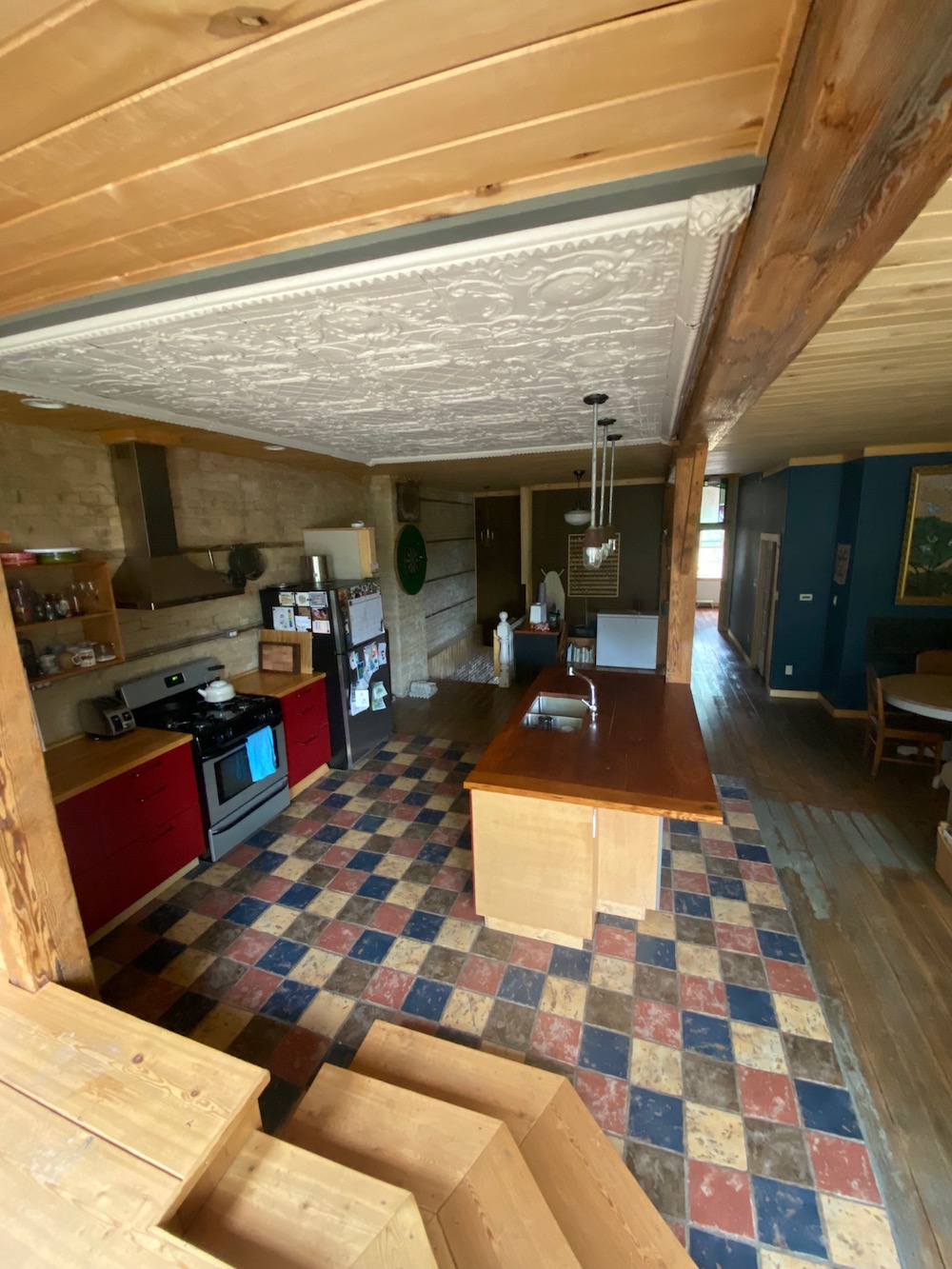 - poplar ceiling (and reclaimed ornate tin in kitchen area)